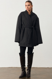 Куртка-кимоно из водостойкой плащёвой ткани. В боковых швах карманы. По краю борта отстрочки.Модель с поясом.