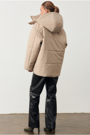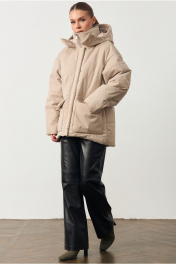 Женская осенняя куртка с капюшоном. Модель выполнена из водоотталкивающего материала. Изделие с утеплителем. Застежка тесьма-молния с планкой на кнопках. Капюшон съёмный. По переду изделия накладные карманы.