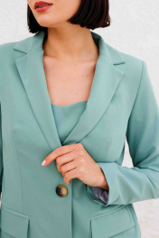 однобортный жакет прямого силуэта, обработан подкладкой, рукава втачные, застежка на 2 пуговицы, обработаны прорезные карманы с клапанами