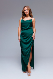 Макси платье-комбинация из атласа для особых случаев AURA otd 3232 изумруд
