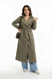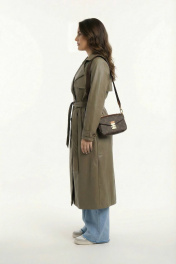Зеленый тренч из экокожи для демисезона AURA otd 7036 олива