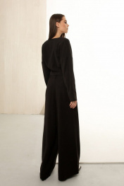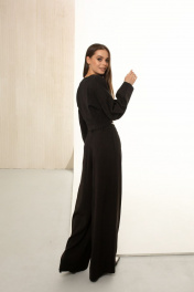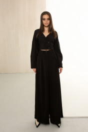 Костюм двойка из текстиля с укороченным жакетом и широкими палаццо AURA otd 9112 черный