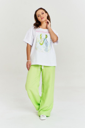 Палаццо из льна с декоративными элементами и карманами AVE RARA 4112 салатовый