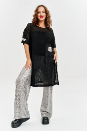 Эффектные брюки из хлопковой сетки с пайетками, прямого силуэта, с трикотажным поясом на резинке. По всей длине брюк мягкая трикотажная подкладка, что делает их невероятно комфортными.
