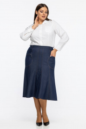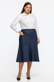 Оригинальная джинсовая юбка, оснащенная внизу дополнительным расширением. Такая модель юбки необходима в гардеробе каждой девушки, она безупречно подойдет к любому фасону блузки и кофточки