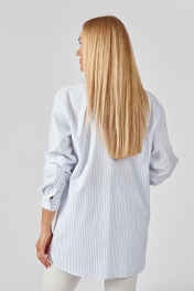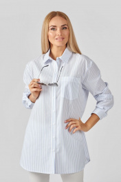 Блузка женская свободного покроя, удлиненная с рубашечным рукавом на манжете по низу,по переду на уровне груди -накладной карман ,застежка спереди на планку с пуговицами ,воротник рубашечный на стойке,низ изделия-фигурный,с закругленными разрезами по боковым швам. Ширина по линии груди блузка(42):54см блузка(44):56см блузка(46):58см блузка(48):60см блузка(50):62см блузка(52):64см Ширина по линии бедер блузка(42):55см блузка(44):57см блузка(46):59см блузка(48):61см блузка(50):63см блузка(52):65см Длина изделия 79,5см Длина рукава 57см