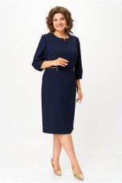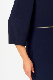 Платье женское, полуприлегающего силуэта. Спинка со средним швом, заканчивающимся шлицей. Перед с нагрудными вытачками от проймы и складками-защипами по талии. В данном платье в качестве декора предложена молния в области талии и по среднему шву спинки. Рукав втачной, одношовный, длиной ¾. Рукав с подрезной деталью. Подрезная деталь по переду с вытачкой, для придания рукаву определенной формы и фасона в стиле-бохо. Горловина округлой формы с разрезом по центральной части, обработана обтачкой.