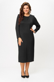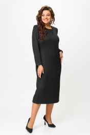 Платье женское полуприлегающее силуэта, выполнено из трикотажа с люрексовой нитью. Длина платья – миди (126см). Платье по спинке со средним швом; застежкой на петлю и пуговицу у горловины и высоким разрезом (35см). Перед цельный с декоративным элементом у горловины, придавая платью элегантность и неповторимость образа. Рукав втачной длинный. Данная модель подходит для повседневного и торжественного образа.