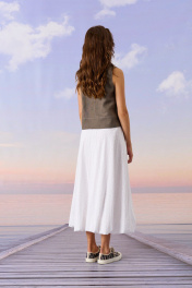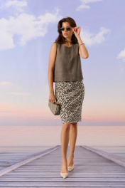 Блузка женская-текстильная (лён). Горловина круглая, окантована. На переде изделия расположен средний вертикальный шов и горизонтальная кокетка по низу.