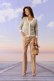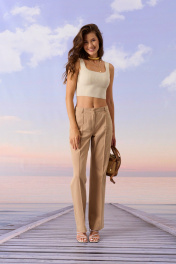 Брюки женские, из текстиля с кантом по переду . По верхнему срезу пояс притачной со шлевками. Брюки на молнии. По переду гульфик и пуговица на поясе. В боковых швах - карманы. По спинке отрезная кокетка и накладные карманы.