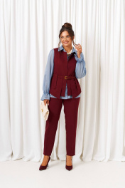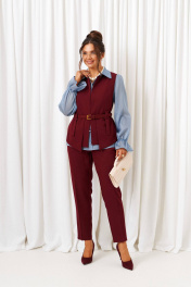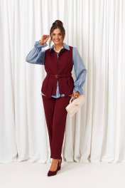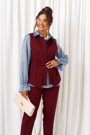 Блуза, брюки, жилет Beautiful&Free 6440 марсала-голубой