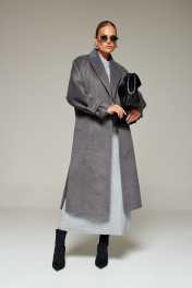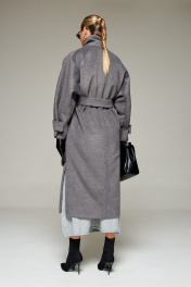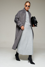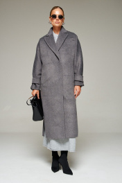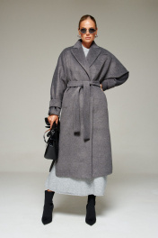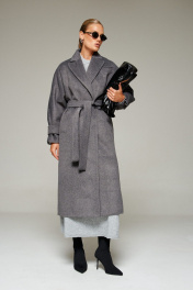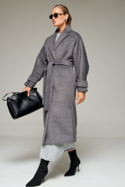Демисезонное пальто прямого силуэта для тех, кто любит комфорт и лаконичность. Это сочетание стиля, современных материалов и безупречного кроя. Лёгкое, удобное и уютное пальто подходит для любого случая выхода. Пальто выполнено из шерстяной ткани, которая обеспечивает теплоизоляцию и защиту от ветра и влаги, подходит для межсезонья и теплой зимы. Двубортное, на подкладке. Изделие рассчитано на температурный режим от +10 до -5 градусов. Модель прямого силуэта актуального покроя «летучая мышь»; предназначена для повседневного использования. Передняя часть цельнокроеная с двумя функциональными прорезными карманами с листочкой и с нагрудной листочкой вверху справа. Под воротником выполнены вытачки. Спинка с центральным швом. Рукав длинный двухшовный тип «летучая мышь». Внизу рукава расположена пата, фиксируемая кнопкой. Воротник классический пиджачного типа с лацканами. Застёжка смещенная, на две крупные невидимые кнопки и на одну потайную петлю с пуговицей, а также на дополнительную навесную петлю с пуговицей для застегивания изделия до верха. Низ изделия ровный. Для удобства динамики по бокам изделия расположены высокие разрезы. Подкладка гладкая. К изделию прилагается пояс-завязка.