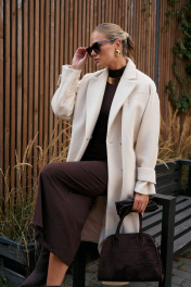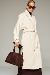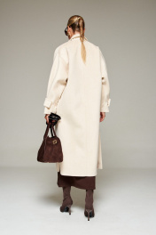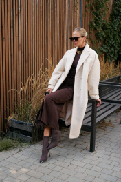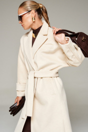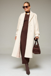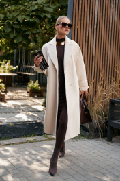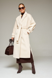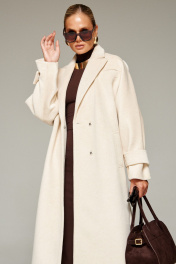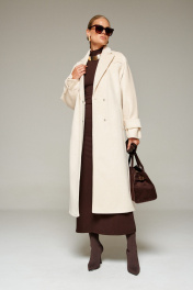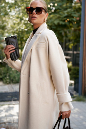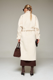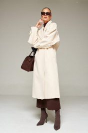 Демисезонное пальто прямого силуэта для тех, кто любит комфорт и лаконичность. Это сочетание стиля, современных материалов и безупречного кроя. Лёгкое, удобное и уютное пальто подходит для любого случая выхода. Пальто выполнено из шерстяной ткани, которая обеспечивает теплоизоляцию и защиту от ветра и влаги, подходит для межсезонья и теплой зимы. Двубортное, на подкладке. Изделие рассчитано на температурный режим от +10 до -5 градусов. Модель прямого силуэта актуального покроя «летучая мышь»; предназначена для повседневного использования. Передняя часть цельнокроеная с двумя функциональными прорезными карманами с листочкой и с нагрудной листочкой вверху справа. Под воротником выполнены вытачки. Спинка с центральным швом. Рукав длинный двухшовный тип «летучая мышь». Внизу рукава расположена пата, фиксируемая кнопкой. Воротник классический пиджачного типа с лацканами. Застёжка смещенная, на две крупные невидимые кнопки и на одну потайную петлю с пуговицей, а также на дополнительную навесную петлю с пуговицей для застегивания изделия до верха. Низ изделия ровный. Для удобства динамики по бокам изделия расположены высокие разрезы. Подкладка гладкая. К изделию прилагается пояс-завязка.