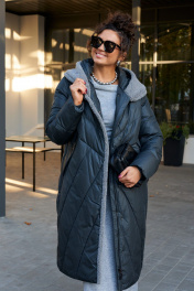 Зимнее, стеганое полупальто прямого силуэта для ценителей стиля и практичности. Это отличное сочетание современных материалов и точного кроя. Лёгкое, удобное и классическое пальто подходит для холодных дней, обеспечивая тепло и комфорт в холодную погоду. Идеально сочетает в себе сдержанность и расслабленность, универсальность и гармоничность. Пальто выполнено из прочной, влагостойкой и приятной на ощупь полиэстерной ткани; на синтетической подкладке. Утеплитель холлофайбер 250 г/м. кв. предназначен для использования изделия при температурном режиме от -10 до -25 градусов. Модель прямого силуэта, базового кроя; предназначена для повседневной носки. Перед с симметричными боковыми карманами с широким отворотом, фиксируемые на кнопку. С правой стороны на отвороте прикреплен отделочный элемент. Спинка с боковыми рельефами от проймы. Рукав длинный втачной двухшовный. По низу внутри рукава предусмотрена дополнительная вставка в виде притачной трикотажной манжеты. Капюшон умеренного объема. По периметру капюшона с внешней стороны выполнена оторочка из искусственного меха «овчина», переходящая на правый борт, которая создаёт дополнительное тепло и защиту от ветра и холода. Застежка центральная на двустороннюю молнию от верха до низа и кнопки. Под капюшоном спереди настрочен дополнительный элемент застежки из экокожи. Низ изделия ровный. Подкладка гладкая с наличием внутреннего кармана слева.
