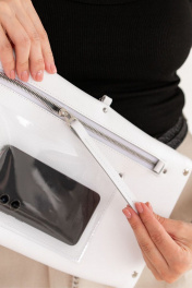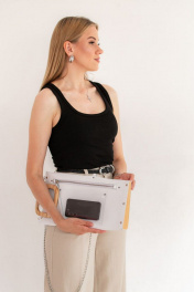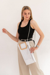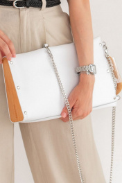 Сумка женская несессер LONG WHITE через плечо из натуральной кожи - это удобный и стильный аксессуар . Держать клатч LONG от бренда BECAUSE BAGS руками, упорядочивая свои мысли и более не беспокоясь о том, какую позу принять. Главное- наша новая модель LONG позволяет принять выгодное положение, не пряча руки в карманы и не делая неловких движений-повесьте ее на плечо, наденьте ее как кросс -боди или держите ее за деревянную ручку-в любом случае-все взгляды будут прикованы к Вам.. Отличное решение использовать такой несессер как сумку, клатч, и таким образом сэкономить место в чемодане. Сумки женские через плечо Because bags можно носить как кросс-боди, на плечо, либо в руках. В сумке LONG боковина сумки и ручка выполнены из натурального дерева Бук. В сумочке имеется внутренний и внешний карман , выполненный из прозрачного материала, что облегчает процедуру поиска потерянных мелочей . В женскую сумочку с деревянными ручками войдут самые необходимые вещи и при этом ваши руки будут свободны. Закрывается сумка на молнию цвета серебра, что в совокупности с натуральными материалами придает ей оригинальный внешний вид и подчеркивает неординарный вкус обладателя данного аксессуара. Кожа и дерево надежно закреплены с помощью металлических заклепок. Сумка выполнена по индивидуальным эскизам из натуральной кожи белого цвета. Внутри сумки с деревянными вставками одно большое отделение, есть карман для документов или мелочей. Необычная сумка Because LONG - Аксессуар для смелых, стильных и уверенных в себе женщин. Универсальная кожаная сумка через плечо будет идеально сочетаться с любой формой одежды и станет прекрасным подарком. Каждый экземпляр ручной работы выполнен с любовью к женщинам. Эта красивая и удобная сумка станет отличным выбором для каждого дня и в любой ситуации. BECAUSE BAGS для тех, кто ценит стиль и качество. Размер 45*21*7