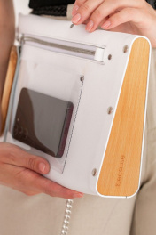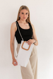 Кожаная сумка через плечо, белая, с деревянными вставками Because LONG_WHITE