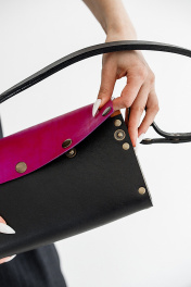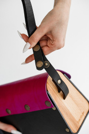 Сумка НИКОЛЬ изготовлена вручную из плотной натуральной кожи и элементов массива бука. Размер 22*15*10 см. Главная отличительная особенность сумки через плечо-это СЪЕМНЫЙ КЛАПАН, который пристегивается к тыльной стороне сумочки с помощью кнопок. Дополнительно можно приобрести клапаны другого цвета. Простые формы и минимум декора. Деревянные вставки из массива бука. Качественная и плотная ременная кожа, хорошо держит форму изделия. Ручка регулируется от длинной 105 см до короткой 65 см за счет перестегивания кнопок. Закрывается сумка на магнитную кнопку цвета античной латуни, что в совокупности с натуральными материалами придает ему оригинальный внешний вид и подчеркивает неординарный вкус обладателя данного аксессуара. Кожа и дерево надежно закреплены с помощью металлических заклепок. Этот аксессуар будет весьма уместно вручить в качестве оригинального подарка себе любимой или на любое торжество. Кожа и дерево надежно закреплены с помощью металлических заклепок. Наша сумка подойдет под любые образы и мероприятия. Сумка с деревянными вставками выполнена по индивидуальным эскизам, с использованием качественных материалов, устойчивых к перепадам температур и механическим воздействиям. Высокое качество дерева и кожи и надежная фурнитура позволит не волноваться за внешний вид и дальнейшую эксплуатацию наших сумок. Внутри сумки с деревянными боковинами одно большое отделение. Многие сумка плана less имеют мягкую ручку для удобного ношения. Универсальная кожаная сумка через плечо будет идеально сочетаться с любой формой одежды и станет прекрасным подарком. Также в коллекции есть более яркие модели. Каждый экземпляр ручной работы выполнен с любовью к женщинам и их нуждам. Эта красивая и удобная сумка станет отличным выбором для каждого дня и в любой ситуации. Лаконичная и стильная маленькая сумочка выполнена из качественной кожи, которая хорошо держит форму. BECAUSE BAGS для тех, кто ценит стиль и качество. Размер 22*15*10