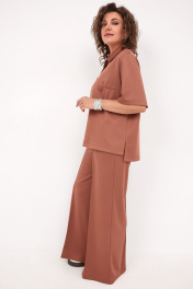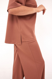 Неповторимый монохромный комплект в стиле спорт-шик выполнен из трикотажной, мягкой, растяжимой ткани с эффектом перелива. Модель выглядит современно и неизбито, она невероятно стройнит силуэт, удлиняет ножки благодаря застроченным стрелкам, создающим вертикаль. Надев комплект, Вы непременно не останетесь без внимания! Блуза- поло свободного кроя с отложным воротником на планке. Визуально удлиняет линию шеи. Рукав втачной с подгибкой по линии низа. На спинке в районе плеча расположены вытачки. В боковых швах - разрезы, обработанные подгибкой. Спинка длиннее переда. Брюки свободного кроя, с застроченными стрелками. Отрезная кокетка на задней части брюк делает их посадку идеальной. Пояс с островком, сзади на кокетке для идеальной посадки. Для Вашего удобства- карманы хулиганы. Низ брюк обработан подгибкой. Дополните комплект любимой парой обуви, минималистичными украшениями, сумочкой, и образ готов! Для того, чтобы правильно подобрать свой размер, необходимо ваш замер объёма груди разделить на 2. (например, объём груди 104:2=52 размер). Замеры в готовом изделии: Блуза: Длина по спинке от плеча: 69см Длина рукава от горловины: 41 см Обхват груди: 114см/46р; 118см/48р; 122см/50р; 126см/52р; 130см/54р; 134см/56р; 138см/58р; 142см/60р; 146см/62р Брюки: Длина с поясом: 108см Обхват бёдер: 108см/46р; 112см/48р; 116см/50р; 120см/52р; 124см/54р; 128см/56р; 132см/58р; 136см/60р; 140см/62р. Рост фотомодели 174 см, размер одежды на фото 52. Допуск расхождения в замерах +-2 см