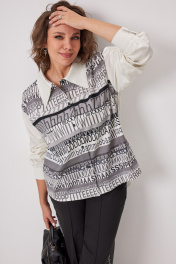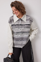 Если Вы ищете что-то особенное и эффектное, что подчеркнёт Вашу индивидуальность, эта блуза именно то, что нужно! Блуза выполнена из сочетания однотонного и принтованного хлопкового текстиля. Стильный текстовый принт добавит индивидуальность в повседневный образ и сделает его запоминающимся! Блуза свободного кроя с отложным воротником на планке с застёжкой на петли – пуговицы контрастного цвета. Рукав со спущенной проймой на манжете. Спинка на кокетке со встречной складкой. Низ спинки имеет фигурную форму. К модели идеально подходят брюки арт. 6069, брюки арт. 6068. Для того, чтобы правильно подобрать свой размер, необходимо ваш замер объёма груди разделить на 2. (например, объём груди 104:2=52 размер). Блуза: длина по спинке от плеча: 78 см длина рукава от горловины: 79 см Обхват груди: 118см/48р; 122см/50р; 126см/52р; 130см/54р; 134см/56р; 138см/58р; 142см/60р; 146см/62р. Рост фотомодели 174 см, размер одежды на фото 52.