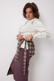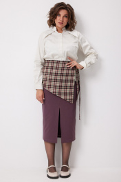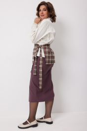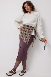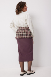 Если Вам хочется стильную, необыкновенную юбку, которая умеет меняться вместе с Вами, тогда эта элегантная модель со съёмной баской - именно то, что Вам нужно! Баска - это не просто украшение, а возможность мгновенно преобразить Ваш образ. Добавьте её для создания более драматичного и женственного силуэта, или снимите, чтобы получить классическую универсальную юбку, подходящую для любого случая. Юбка идеально сочетается с блузами, джемперами, лонгсливами, каждый раз создавая новое, неповторимое впечатление. Элегантная юбка миди без подкладки, прямого кроя - идеальный выбор для создания стильных образов. Её универсальность позволяет сочетать юбку с различными блузами и обувью, подчёркивая женственность фигуры. Юбка выполнена из текстильной хорошо растяжимой ткани, идеально садится по фигуре, стройнит, визуально вытягивает силуэт. По центру выполнен разрез правильной высоты, создающий элегантную линию по ножке. Пояс притачной, без застёжки на эластичной резинке с островком. Низ изделия обработан в подгибку. Баска отлитная (съёмная) на поясе с резинкой, который завязывается самостоятельно, выполнена из приятной к телу костюмной текстильной ткани в клетку. По периметру баски застрочены встречные складки, для придания правильной объёмной формы. Низ имеет ассиметричную форму. Предлагаем сочетать юбку с блузой арт. 4135. Для того, чтобы правильно подобрать свой размер, необходимо ваш замер объёма груди разделить на 2. (например, объём груди 104:2=52 размер). Юбка: длина юбки с поясом: 80см обхват бёдер: 96см/48р; 100см/50р; 104см/52р; 108см/54р; 112см/56р; 116см/58р; 120см/60р; 124см/62р. Рост фотомодели 174 см, размер одежды на фото 52.