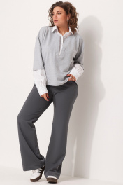Базовые клёш брюки из трикотажа с эластичным поясом BegiModa 6057 графит