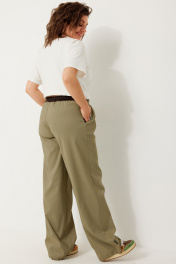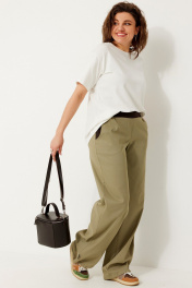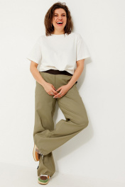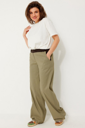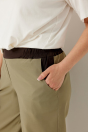 Свободные текстильные брюки с эластичным поясом и контрастными вставками BegiModa 6063 олива