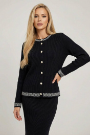 Жакет женский темно-синий вязаный на пуговицах Элегантный женский жакет — универсальная модель для создания стильных деловых и повседневных образов. Трикотажный жакет подчеркивает силуэт и обеспечивает комфорт в течение всего дня. Застежка на пуговицы актуальной в стиле classic и smart casual. Прямой крой, аккуратная посадка по фигуре делают жакет практичным и функциональным. Модель легко комбинируется с брюками, юбками, джинсами, топами и блузками. Подходит для офиса, работы, учебы, деловых встреч, мероприятий и повседневной носки. Идеальный вариант как офисный жакет, кардиган на пуговицах, легкий пиджак женский или базовый элемент капсульного гардероба