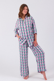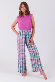 Брюки-палаццо из вискозы с высокой посадкой для лета Belarusachka РСД4284 клетка