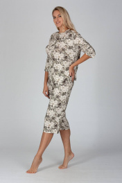 Трикотажный комплект с капри выполнен из набивного вискозного полотна приятного к телу и скрывающего все, что нужно скрыть). Комфортные и свободные джемпер и капри не сковывают движений.