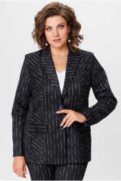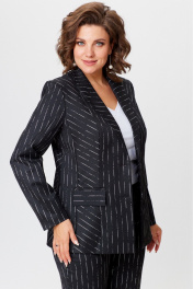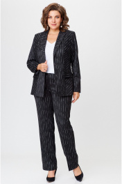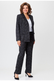 Чёрный деловой комплект из жакета и классических брюк БелЭльСтиль 412+596-08_2023 полоска