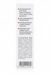 Ретинол (Retinyl Palmitate) – является естественной производной витамина А. Способствует уменьшению морщин за счет их разглаживания, применяется для уменьшения возможной гиперпигментации, стимулируя обновление клеток. Возвращает коже упругость и эластичность, придает ей мягкость, шелковистость. Коллаген – высокоочищенный коллаген морского происхождения обладает способностью поддерживать достаточный уровень влаги, оказывает лифтинг-эффект, разглаживает микрорельеф кожи. Придает коже шелковистость и гладкость. Сыворотка может использоваться самостоятельно и для обогащения средства основного ухода для усиления его действия. Применение Нанести небольшое количество сыворотки на очищенную сухую кожу лица. Применять ежедневно для достижения видимого результата. Объем: 30 г