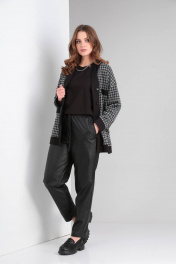 Жакет свободного силуэта с накладными карманами на пуговицах. Дополнить образ можно футболкой М. 8170/1 и брюками из эко-кожи М. 455 Длина изделия от плеча: 48-52 — 77 см. 54-60 — 79 см. Длина рукава от горловины: 50-52 — 76 см. 54-60 — 80 см.