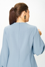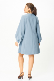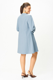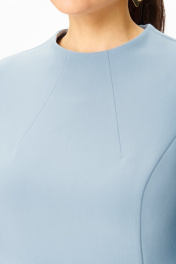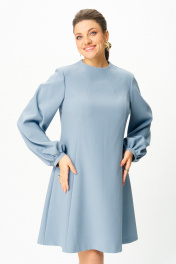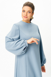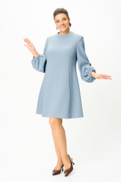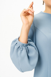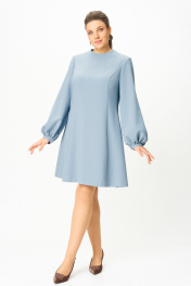 Стильное женское платье из плательной ткани с содержанием вискозы. Платье «А» образного силуэта с рельефными швами по переду и спинке. Горловина круглая с цельновыкроенной стойкой. Застежка на тесьму молния в центральном шве спинки. Рукава втачные, со сборкой по низу, на узком манжете с застежкой на петлю и пуговицу. Платье без подкладки. Длина платья – 97 см Длина рукава – 64 см