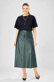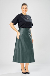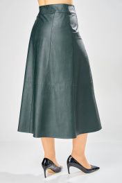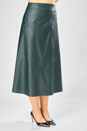 Длина юбки – 87 см Женская юбка. Стильная женская юбка из эко-кожи на хлопковой основе. Юбка А образного силуэта, по переду и спинке рельефные швы, по переду от рельефа до бокового шва, карманы с листочкой, застежка на молнию в центральном шве переда. Верх юбки на поясе с застежкой на кнопки. Юбка на подкладке.