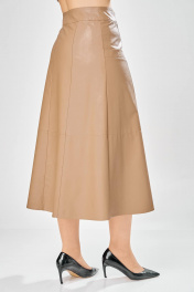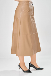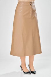 Длина юбки – 87 см Женская юбка. Стильная женская юбка из эко-кожи на хлопковой основе. Юбка А образного силуэта, по переду и спинке рельефные швы, по переду от рельефа до бокового шва, карманы с листочкой, застежка на молнию в центральном шве переда. Верх юбки на поясе с застежкой на кнопки. Юбка на подкладке.