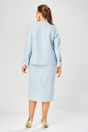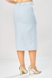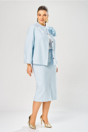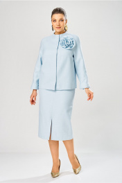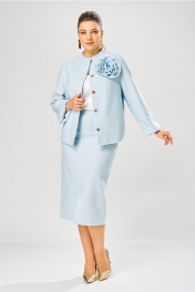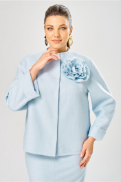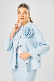 Комплект женский 2-ка. Стильный женский комплект, выполнен из жаккарда с большим содержанием хлопка. Жакет прямого силуэта, с центральной застежкой на пришивные кнопки Горловина с цельновыкроенной стойкой, рукав реглан. Низ рукава и низ изделия с вытрепанным краем. Жакет украшен декоративной розой из основной ткани. Жакет на подкладке. Юбка карандаш, актуальной длины до середины икры. По переду и спинке центральные швы, в переднем шве по низу разрез, по спинке застежка молния, верх юбки оформлен отрезным поясом. Юбка на подкладке. Длина жакета – 63 см Длина рукава от горловины – 77 см Длина юбки – 79 см.