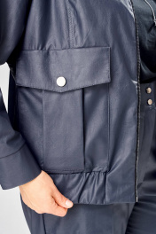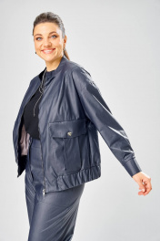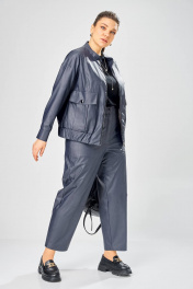 Длина куртки – 62 см Длина рукава – 50 см Длина брюк по боковому шву– 100 см Стильный женский комплект, выполнен из эко-кожи. Куртка свободного силуэта, застегивается на молнию, по переду накладные карманы с клапаном и декоративной кнопкой. Головина оформлена воротником стойка. По спинке отрезная кокетка с клапаном. Рукава со спущенной поймой, по низу притачной манжет с застежкой на кнопки. По низу куртки, притачная планка с резинкой. Куртка на подкладке. Брюки зауженные к низу, по передним половинкам накладные карманы, застежка по линии банта на молнию, на задних половинках отрезная кокетка и накладные карманы. Верх брюк на пояса с застежкой на кнопки.