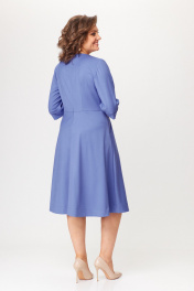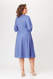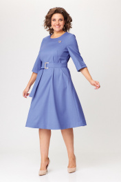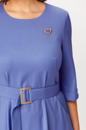 Элегантное женское платье, отрезное по линии талии. Лиф прилегающего силуэта с талиевыми вытачками. Горловина круглая. Юбка расширенная к низу в боковых швах карманы с подрезным бочком. Застежка в центральном шве спинки на тесьму молния. Рукава втачные длина ¾ по низу отложной манжет. Платье без подкладки. Длина платья – 108 см Длина рукава – 40 см