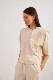 брюки бежевые свободные на каждый день из текстиля BURVIN 9615-11