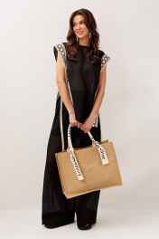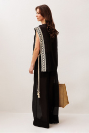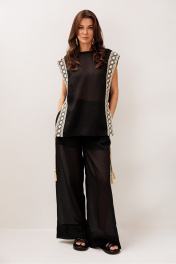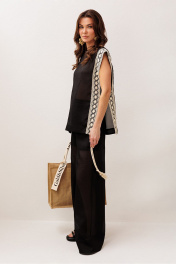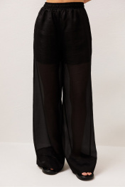 Брюки прямого силуэта на притачном, отстроченном поясе на резинке. С карманами в боковых швах. Верхняя часть брюк на подкладке из основной ткани.