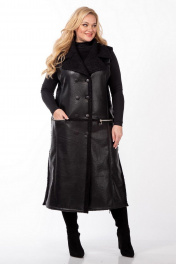 Жилет женский длинный от Celentano. Выполнен из экокожи высокого качества. Затежка двубортная на петли и пуговицы. По полочке обработана кокетка и рельефы, воротник отложной. Карманы вертикальные на молнии. Спинка разрезная по среднему шву, состоит из нескольких подрезов. В модели есть прибавка на верхнюю одежду. Длинна изделия по спинке 121 см. Изделие выполнено из высококачественной мягкой экокожи, которая не трескается и не растягивается, в отличие от натуральной кожи. Все молнии на изделии металлические. Жилет без подкладки и утеплителя. По температурному режиму подходит для осени, еврозимы (до небольшого минуса) и весны. Примечание: Перед первой примеркой рекомендуется пройти изнанку (мех) изделия липким роликом для чистки одежды. Рост модели 170 см.