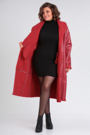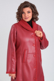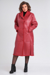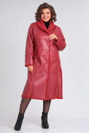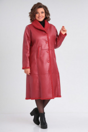 Пальто женское длинное из искусственного меха и экокожи Celentano 2071.2 алый