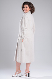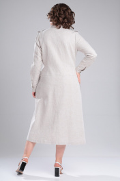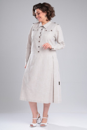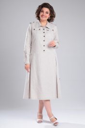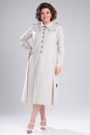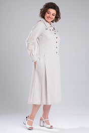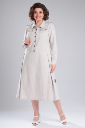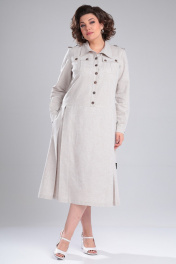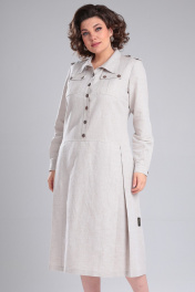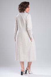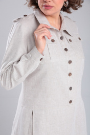 Льняное платье в стиле "сафари" от Celentano длиной миди. По передней части изделия и спинке идет подрез чуть ниже линии талии, от которого спереди выполнены две встречные складки. Застежка центральная на петли и пуговицы, воротник втачной отложной. Перед платья с нагрудными вытачками и двумя карманами с клапаном. Спинка разрезная с центральным швом и талиевыми вытачками. В боковом шве карманы. Рукав длинный одношовный втачной, заканчивается манжетой с застежкой на петлю и пуговицу.По плечевому шву выполнена пата. Платье выполнено из качественного белорусского льняного полотна (пр-во Орша). Ткань не тянется. Все пуговицы на платье натуральные кокосовые. Длина изделия по спинке 120 см., длина рукава 62 см с учетом манжеты. Рост модели на фото 170 см, 52 размер. Наше платье из натурального льна будет комфортно для повседневного использования весной или прохладным летом.