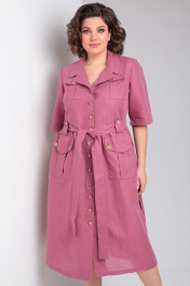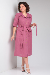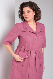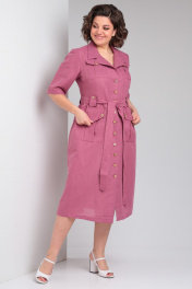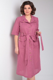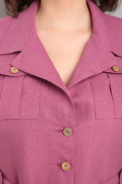 Очаровательное льняное платье в стиле ""сафари"" от Celentano длиной миди. Застежка центральная на петли и пуговицы, воротник отложной пиджачного типа. По полочке и спинке платья идет подрез по линии талии, нижняя часть платья присборена. По талии выполнены паты для пояса. Полочка с карманами с клапаном и нагрудными вытачками. Ниже подреза расположены функциональные накладные карманы с клапаном. Рукав одношовный втачной длиной до локтя. Платье выполнено из качественного белорусского льняного полотна (пр-во Орша). Ткань не тянется. Все пуговицы на платье натуральные кокосовые. Длина изделия по спинке 118 см., длина рукава 36 см. В комплекте пояс из основной ткани. Рост модели на фото 170 см, 52 размер. Наше платье из натурального льна будет комфортно для повседневного использования весной и летом. Красиво будет смотреться также с поясом контрастного цвета.