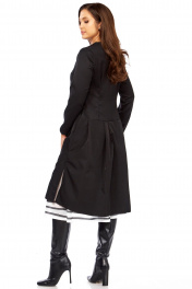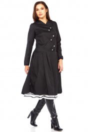 Платье с эффектом двухслойности от Celentano Представьте образ, который сочетает в себе элегантность и дерзость, классику и авангард. Перед вами — уникальное платье, созданное для тех, кто ценит индивидуальность и безупречный стиль! Это не просто платье, это стильный дуэт в одном флаконе, искусно имитирующий многослойный комплект. Глубокий черный цвет верхнего платья с приталенным лифом и изящными складками на юбке создает утонченный силуэт. А высокие боковые разрезы игриво открывают взгляду контрастную белую юбку-компаньон, украшенную графичными черным кружевом по низу. Этот эффект — настоящий магнит для взглядов! Особый шарм платью придает асимметричная застежка на крупные пуговицы, которая выгодно подчеркивает линию шеи и создает необычный акцент. Удобный крой и качественная ткань гарантируют, что вы будете чувствовать себя комфортно и уверенно в любой ситуации. Это платье — воплощение современного шика: ✅ Неповторимый дизайн: Эффект многослойности и асимметричная застежка выделят вас из толпы. ✅ Идеальная посадка: Приталенный силуэт подчеркнет достоинства фигуры. ✅ Универсальность: Отлично смотрится как с элегантными туфлями, так и с высокими сапогами Длина платья 110см, длина рукава 62см длина юбки 75см