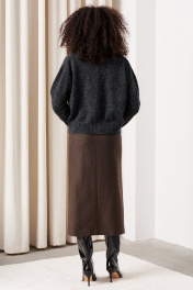 Кардиган женский вязаный из итальянской полушерстяной пряжи с мохером. Длина изделия по спинке 58 см, длина рукава 56 см. Застежка центральная по планке на петли и пуговицы. Вырез горловины треугольный.
