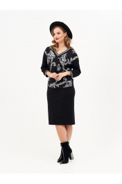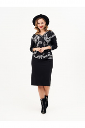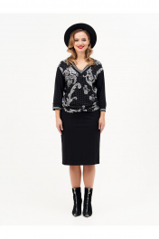 Превосходный юбочный комплект элегантного лаконичного дизайна, позволит создать презентабельный, исключительно изысканный образ. Джемпер с V-образной горловиной, рукавами три четверти и притачными манжетами. Юбка классического кроя, с хорошей посадкой по фигуре. Идеальный вариант на любой случай. Длина джемпера 58 см, длина рукава 41см, длина юбки 66 см