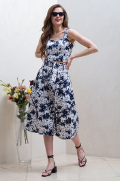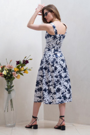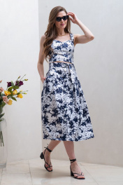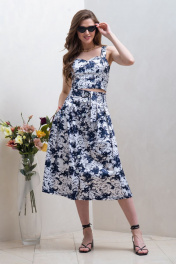 Юбка миди из хлопка с складками и боковыми карманами Condra 12072 белый-синий