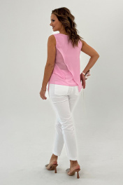 Круглогодичный топ без рукавов с жемчугом и асимметричным низом Condra 16244 розовый