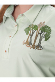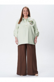 Эта блузка прямого силуэта идеально сочетает в себе элегантность и комфорт. Ее длина чуть ниже линии бедра делает модель универсальной, подходящей как для офисного, так и для повседневного образа. Длинные рубашечные рукава с патой от низа добавляют изысканности и позволяют регулировать их длину по желанию. Перед блузки украшают застежка ‘поло’ на петли и пуговицы, что придает ей классический вид. Отложной воротник на отрезной стойке добавляет нотку строгости и стиля, а кокетка на спинке подчеркивает изящество силуэта. Застежка на петли и пуговицы на спинке обеспечивает удобство при носке. Дополнительно, блузка украшена декоративной вышивкой на передней части, которая добавляет индивидуальности и делает изделие более привлекательным. Фигурный низ блузки завершает образ, придавая ему легкость и утонченность. Эта блузка — отличный выбор для тех, кто ценит стильные и практичные вещи в своем гардеробе.